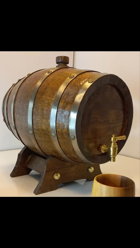 بشکه بلوط امریکایی تمام چوب بدون هیچ مخزن وچسبی ساخته میشن با تزیینات گل میخ تسمه وشیر برنجی و وابندی تحویل بگیرید