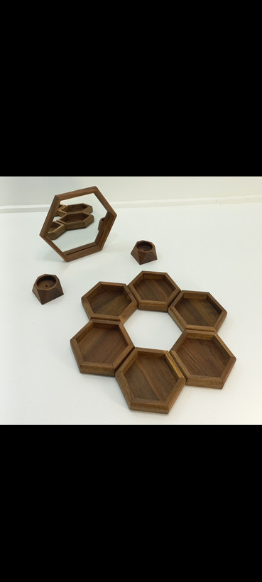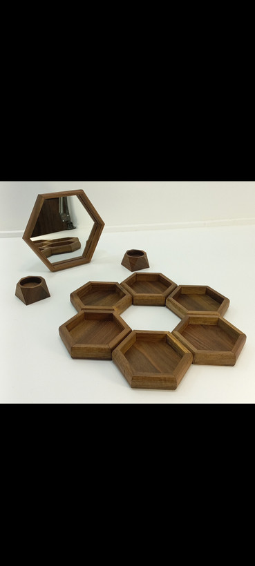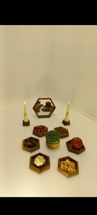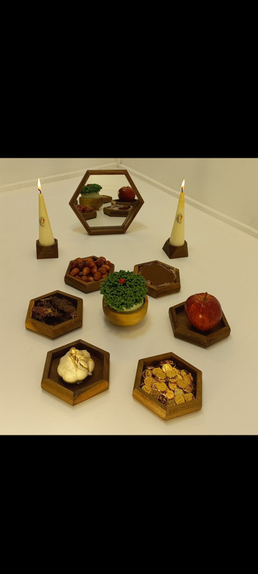 ست چوبی هفت سین شش ضلعی همراه اینه چوب گردو قیمت مناسب و تولیدی